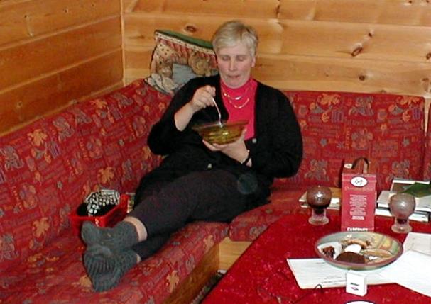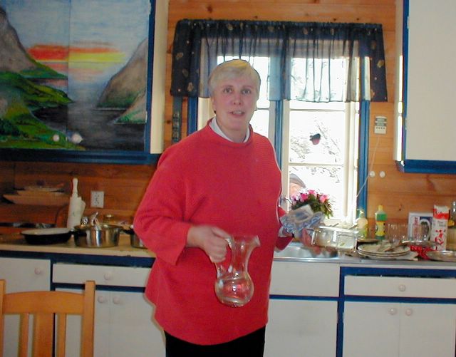 Rotraud in her kitchen being the host